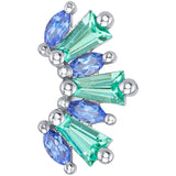 - Medium: 12mm x _mm threaded end with alternating (3) 4mm x 2mm x 1.5mm London Blue Topaz Tapered Baguettes & (4) 3mm x 1.5mm Marquise-Cut Rainbow Moonstones in Prong's