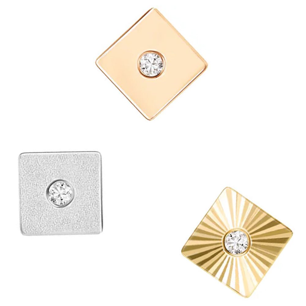 This square-shaped beauty features a dazzling center diamond and with three finish options it fits right into any curation!
