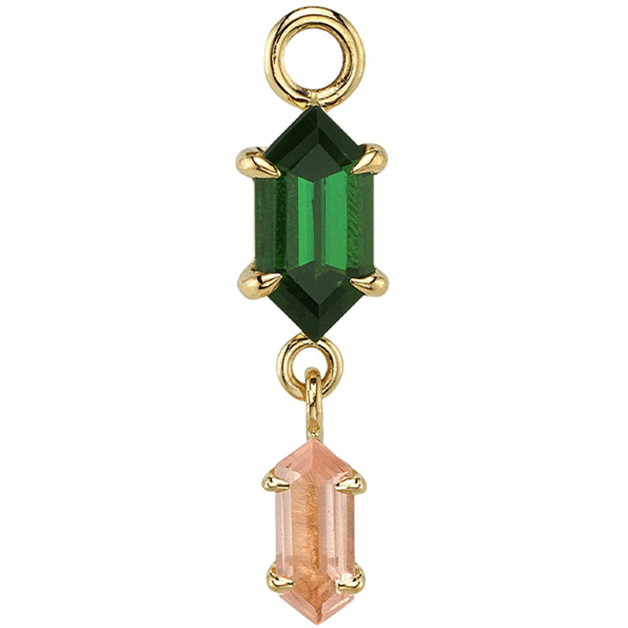 "Deco Duality" in Gold & Platinum with Green Tourmaline & Rose Quartz