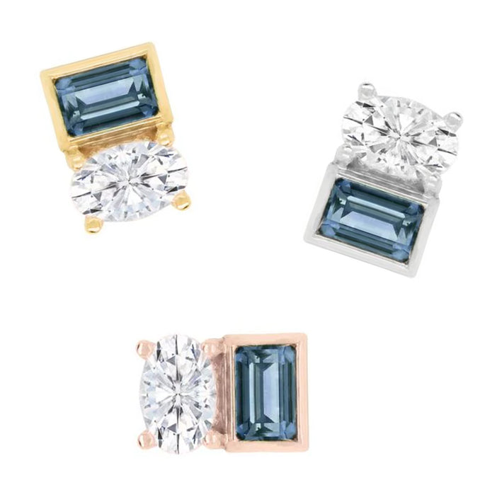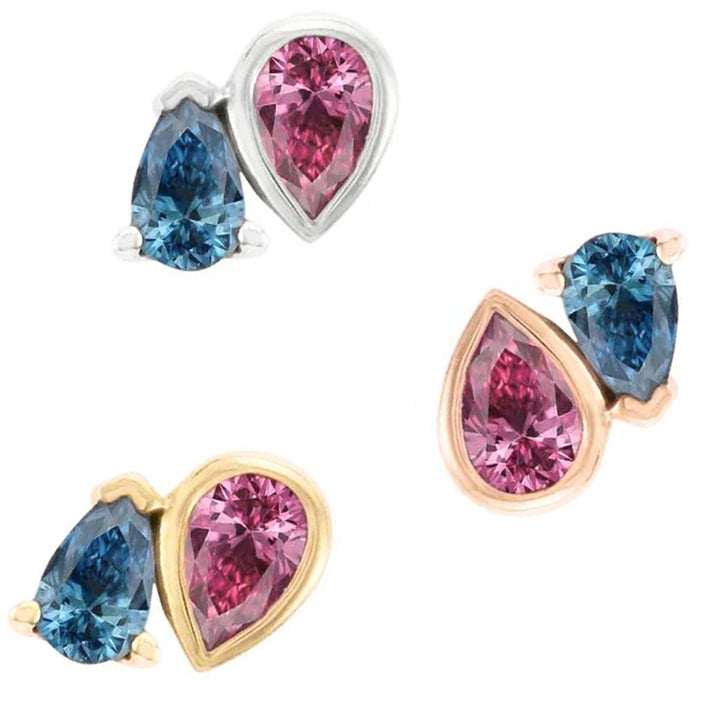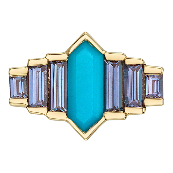 "Fitzgerald" Threaded End in Gold & Platinum with Turquoise & Chatham Alexandrites