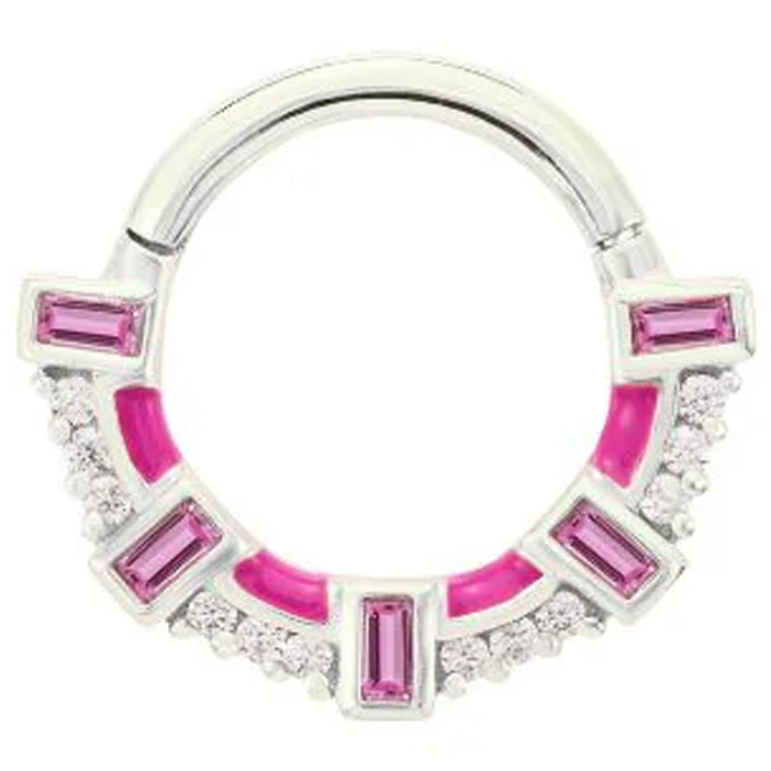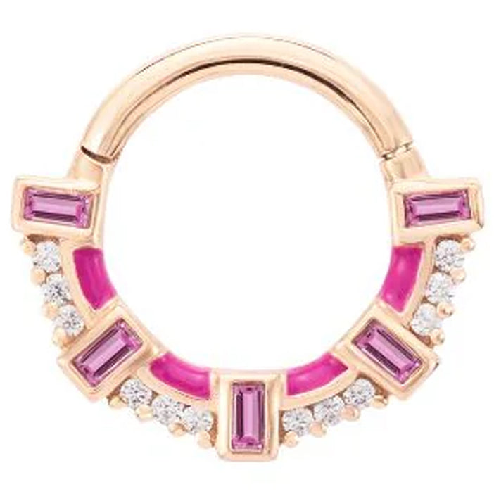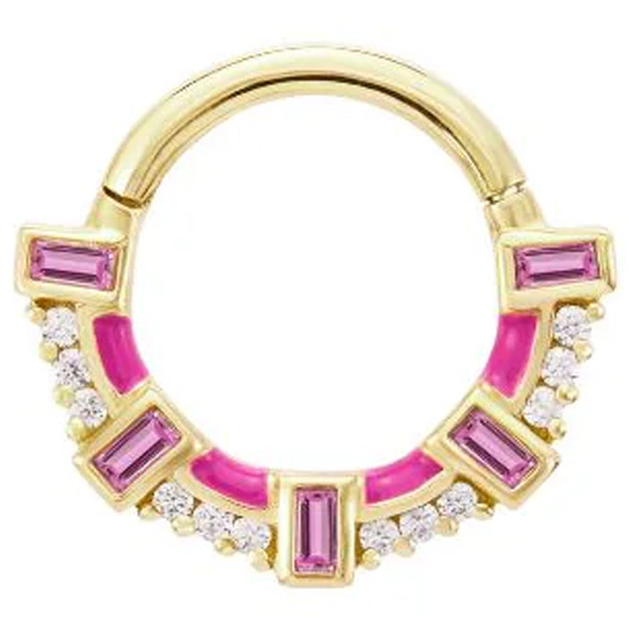"Lola" Hinge Ring / Clicker in Gold with Pink Sapphire & CZ's