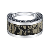 - (12) forward facing 1.5mm Round Black Diamonds in Prong's & (10) downward facing 4mm x 2mm Baguette Cut Pyrite in Prong's