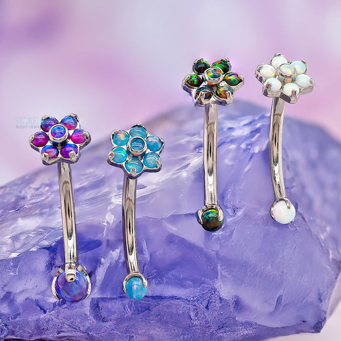 Opal Flower & Opal Ball in Prong's Curved Barbell