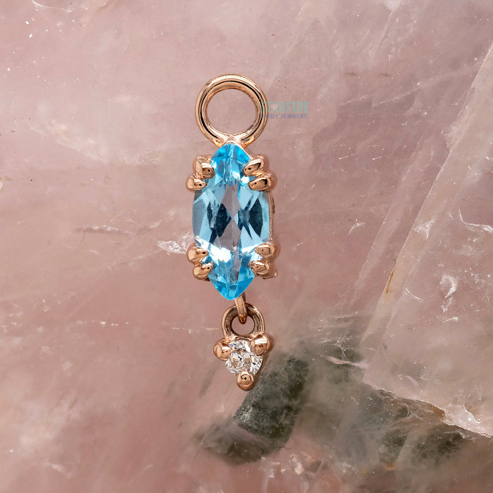 "Georgia" Charm with Dangle in Gold with Swiss Blue Topaz & Diamond