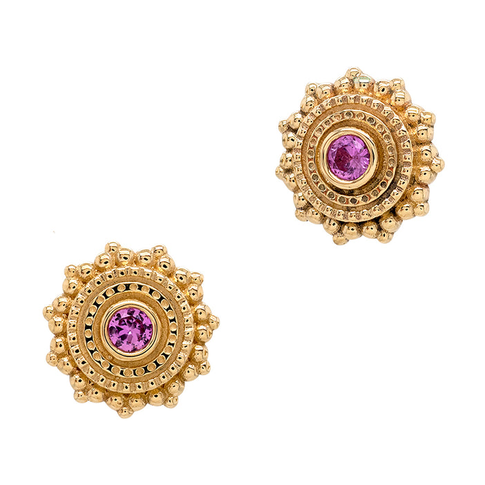 Round Afghan Threaded End in Gold with Pink Sapphire