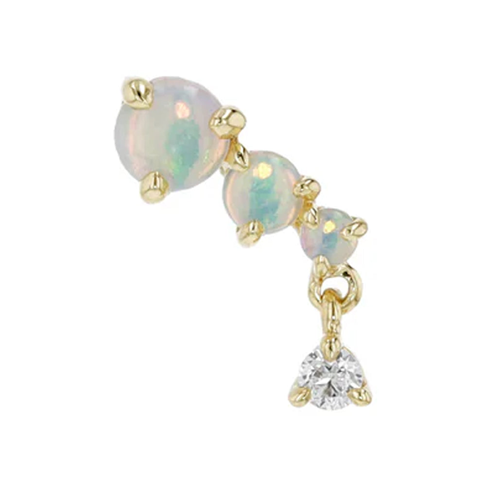- 6mm x 4mm threadless end with (1) _mm, (1) _mm & (1) _mm Round Opal Cabochons in Prong's & (1) _mm Round Genuine Diamond in Prong's on a dangle