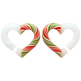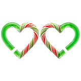 Christmas is here! Show off your love for the Holiday season by wearing these beautiful glass hearts with swirls that look like a candy canes dangling from your ears!