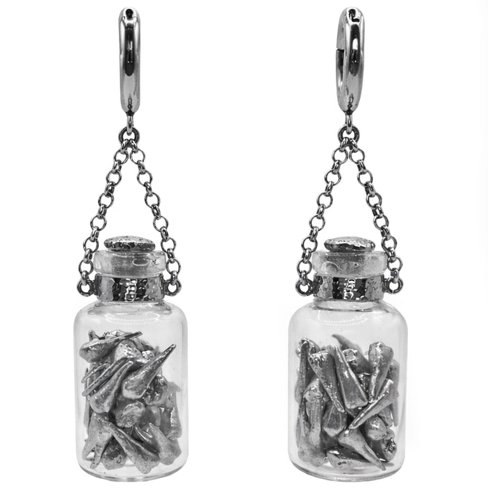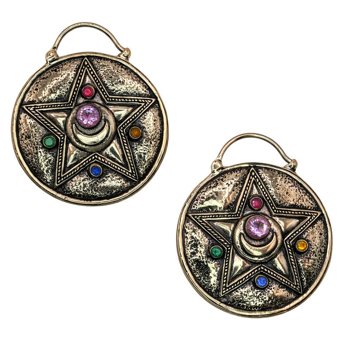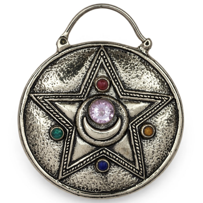 Round Glass Gem Plugs in Wood - Sparkle Silver