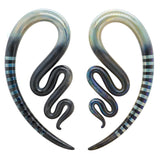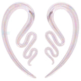 Stretch your earlobes with style with these River Talons that are designed with a unique shape. It comes in a pink, rose water color and features an oil slick finish that will produce a luminous array of colors at different angles.