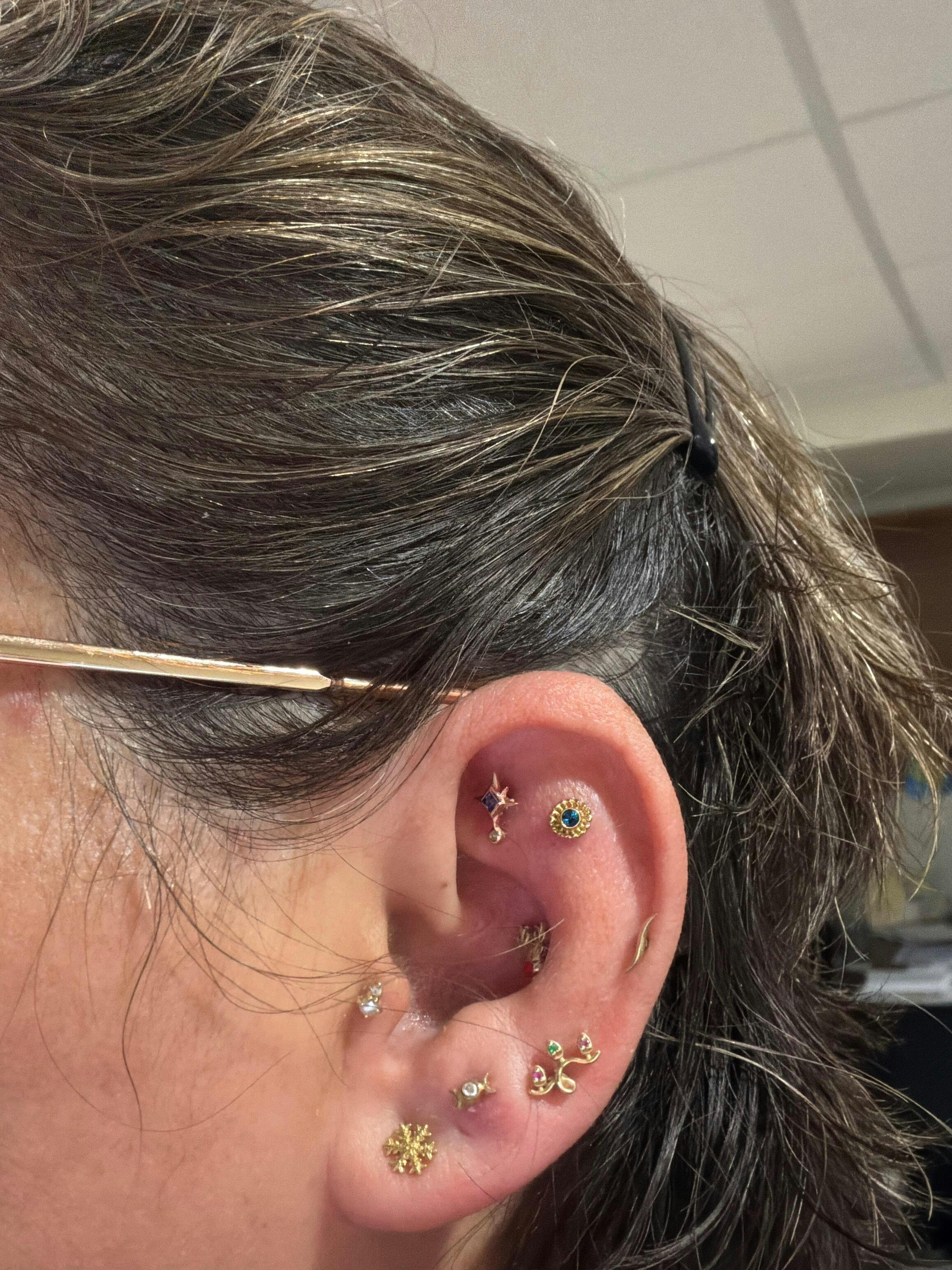 Commonly worn in: earlobes, sensitive lobes, cartilage, helix, conch, tragus, monroe, medusa, philtrum, lip, labret