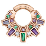"Atlantean" Hinge Ring in Gold with Emerald, Amethyst, Tanzanite & White Diamond
