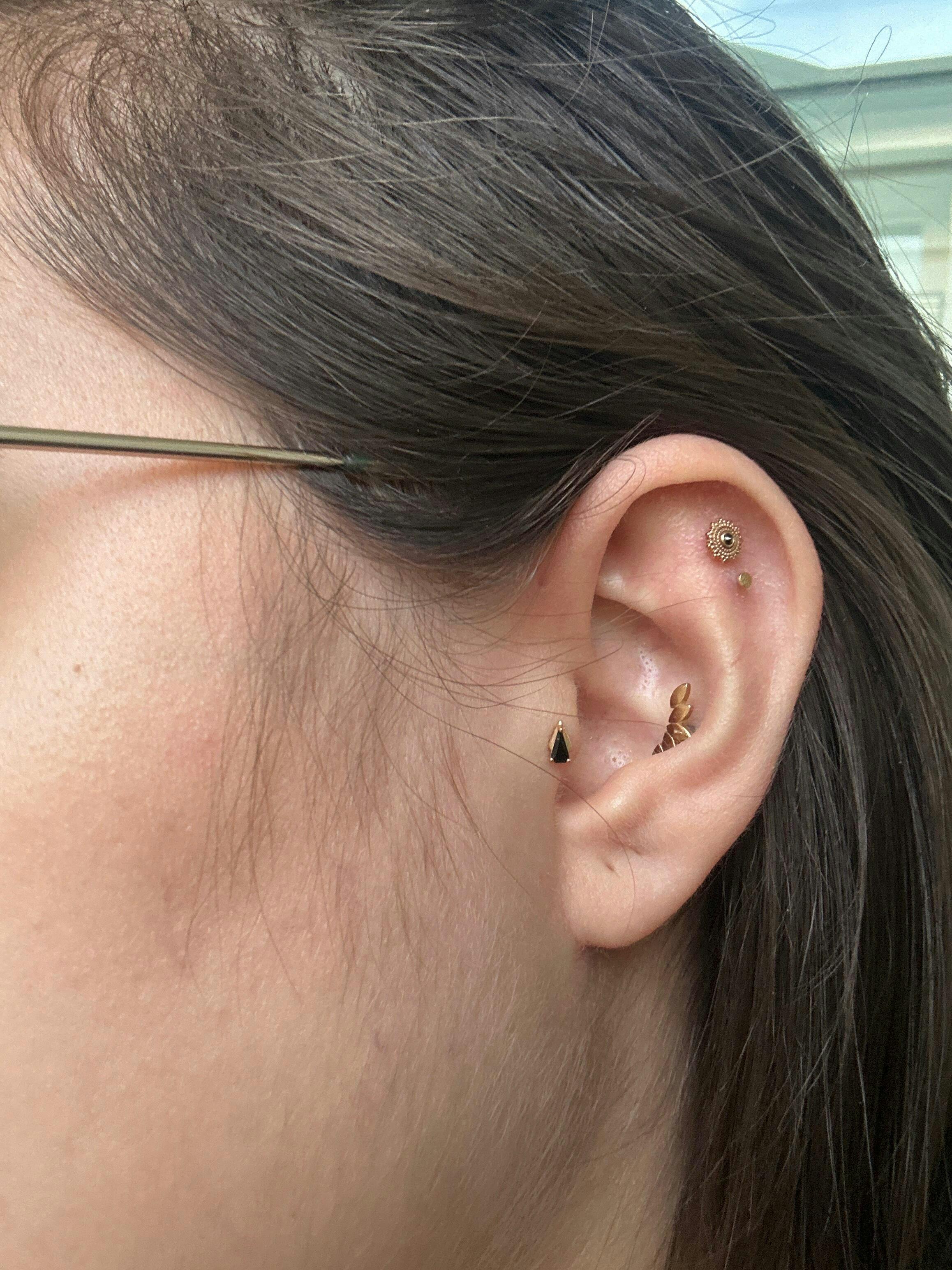 Commonly worn in: earlobes, sensitive lobes, cartilage, helix, conch, tragus, monroe, medusa, philtrum, lip, labret
