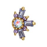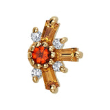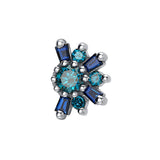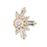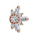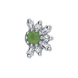 • 5.5mm threaded end with (4) 1.25mm x 1mm x 0.75mm White CZ Tapered Baguettes & (3) 1mm Round White CZ's surrounding (1) 2mm Round Faceted Chrysoprase in Prong's